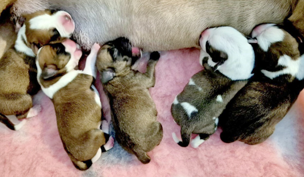 4 čarodějové a jedna čarodějka přišli na svět 31.10.2025. Přišli jsme na svět přirozenou cestou, jak jinak než po dlooouhých přípravách (od čtvrtečního odpoledne) a Maruška se vzorně stará. Díky Simoně za možnost využít Vendelína v mém chovu, ze štěňátek mám velkou radost, je to krásný a vyrovnaný vrh.