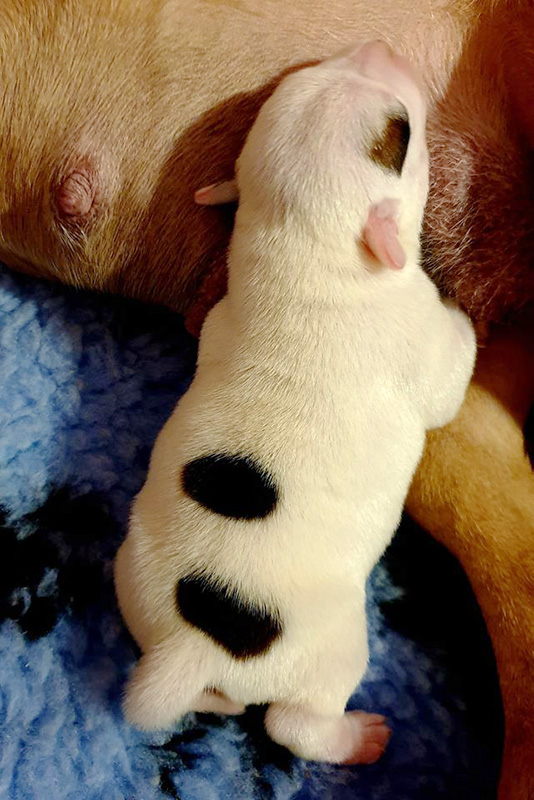 Dne 17.3. 2020 v odpoledních hodinách přišla na svět štěňátka z vrhu „E“. Máme 3 pejsky a jednu fenku. K rezervaci máme bílého pejska s červenými znaky. BAER vyšetření sluchu samozřejmostí. K odběru v první polovině května. V případě zájmu nás kontaktujte.